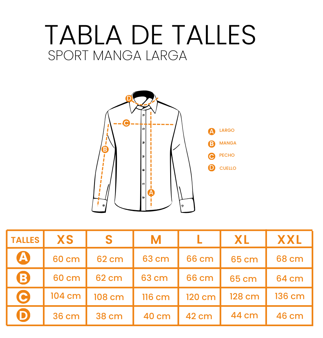 Para saber cuál es el talle correcto comparar las medidas que están en nuestra tabla sobre una camisa.